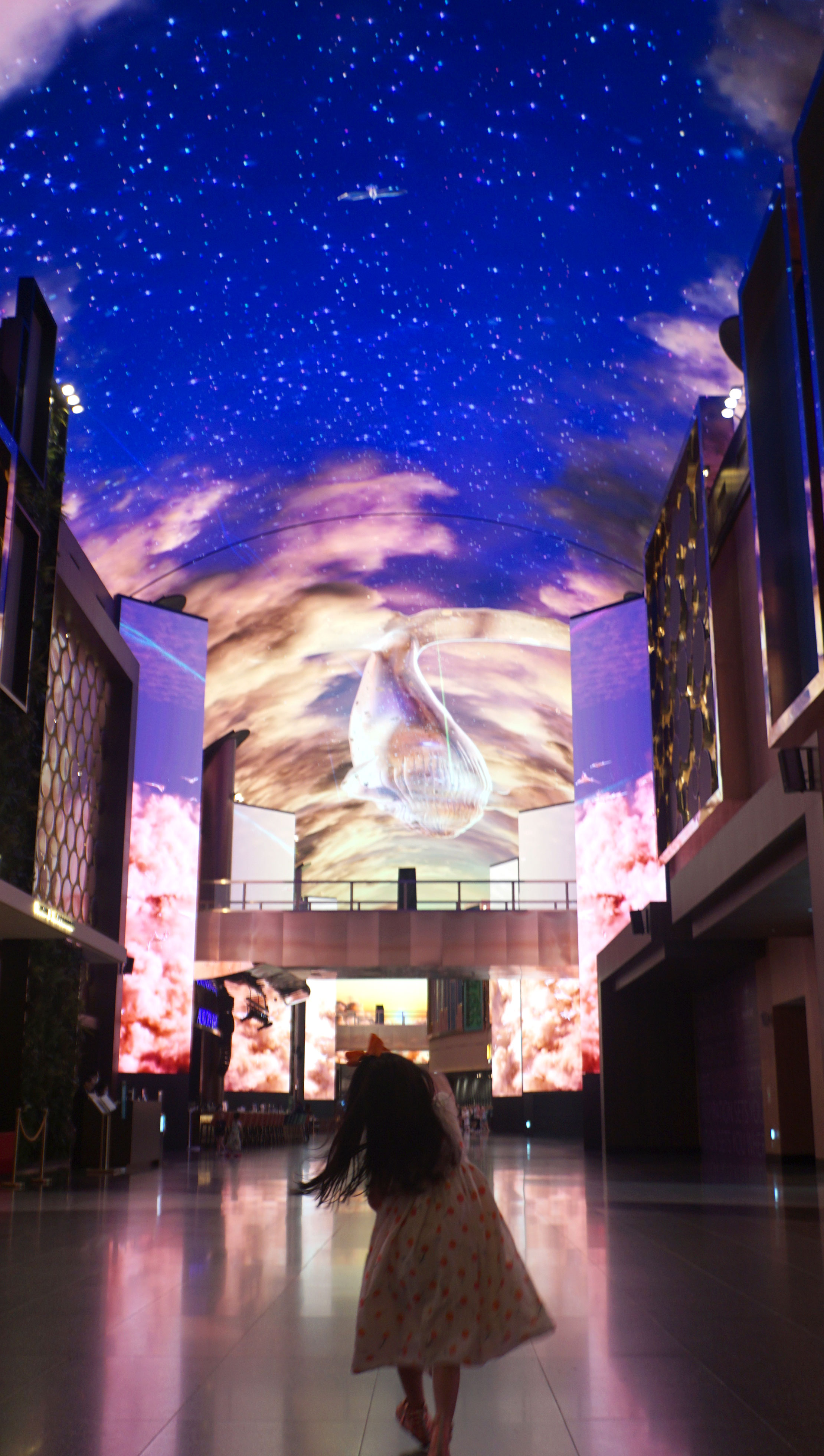 인스파이어 엔터테인먼트 리조트는 고래가 날아다니는 오로라 미디어 아트로 유명하다.