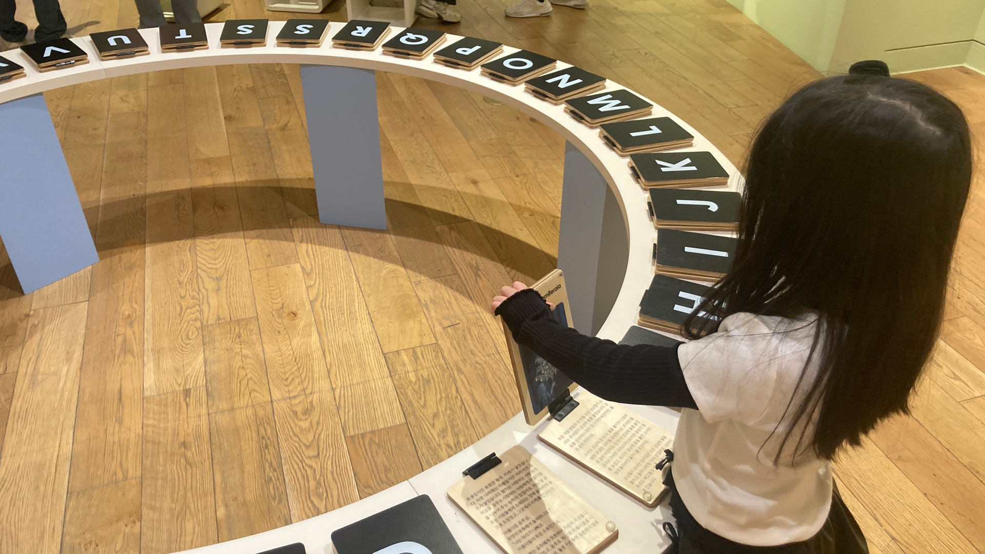 알파벳이 도넛모양의 책상에 따라 정렬되어 시각적 호기심을 불러일으킨다.