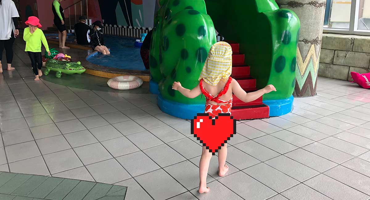 물의 높이가 낮고 키즈풀 안쪽으로 혀를 내밀고 있는 개구리 미끄럼 틀이 앙증맞다.