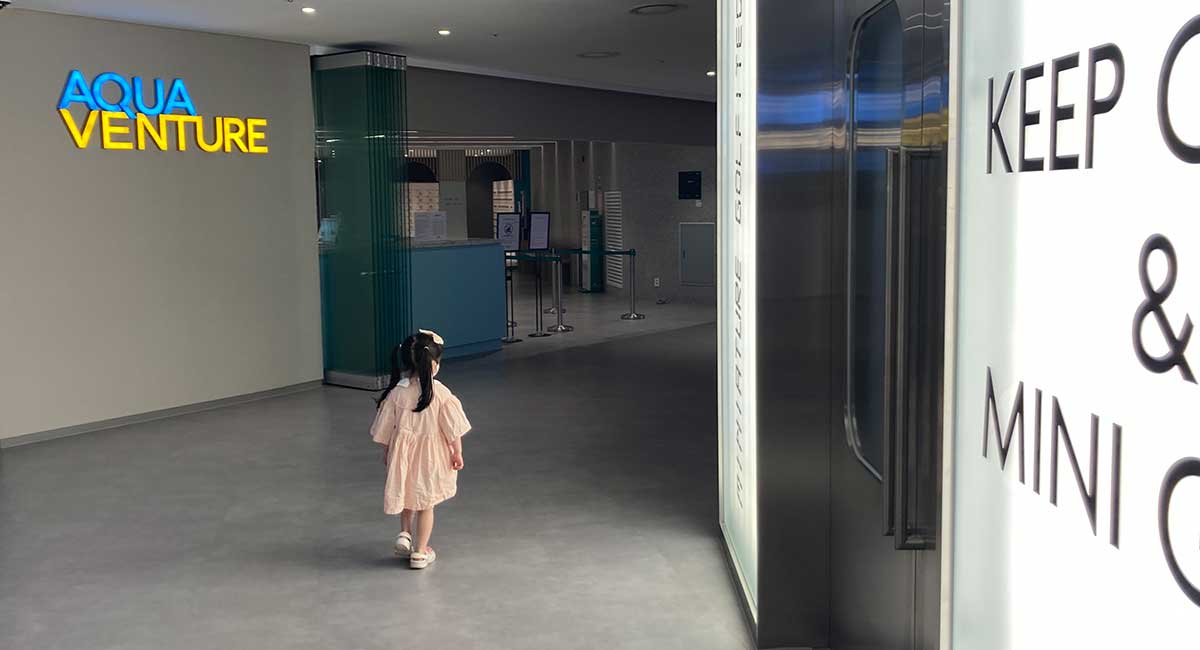 지하에는 <Fun Zone>, 미니 골프, 사우나, 아쿠아벤쳐가 있다.