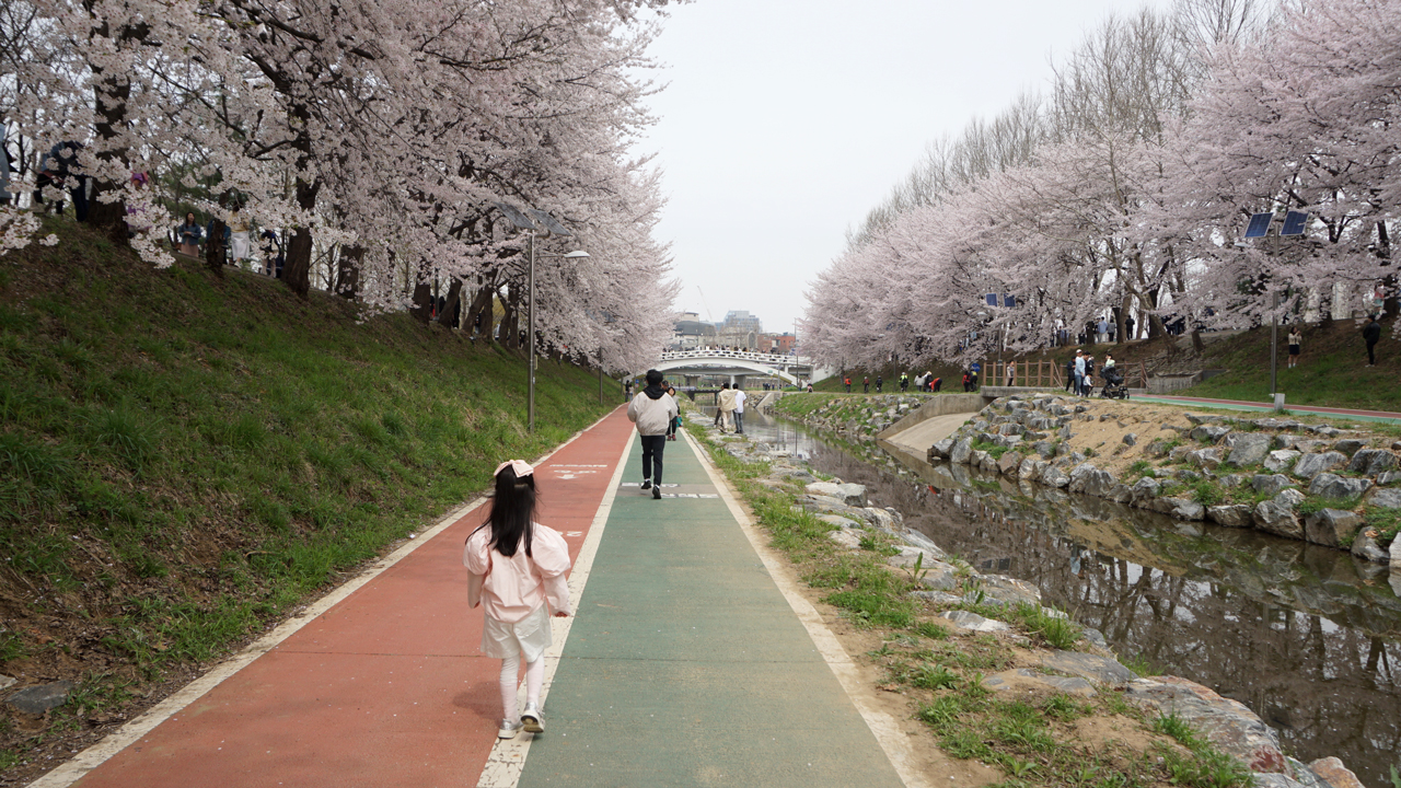 양재천 둔치를 따라 심어진 수천 그루의 벚나무들이 만개하면 마치 하얀 꽃구름이 둥둥 떠 있는 듯한 환상적인 풍경을 연출한다.