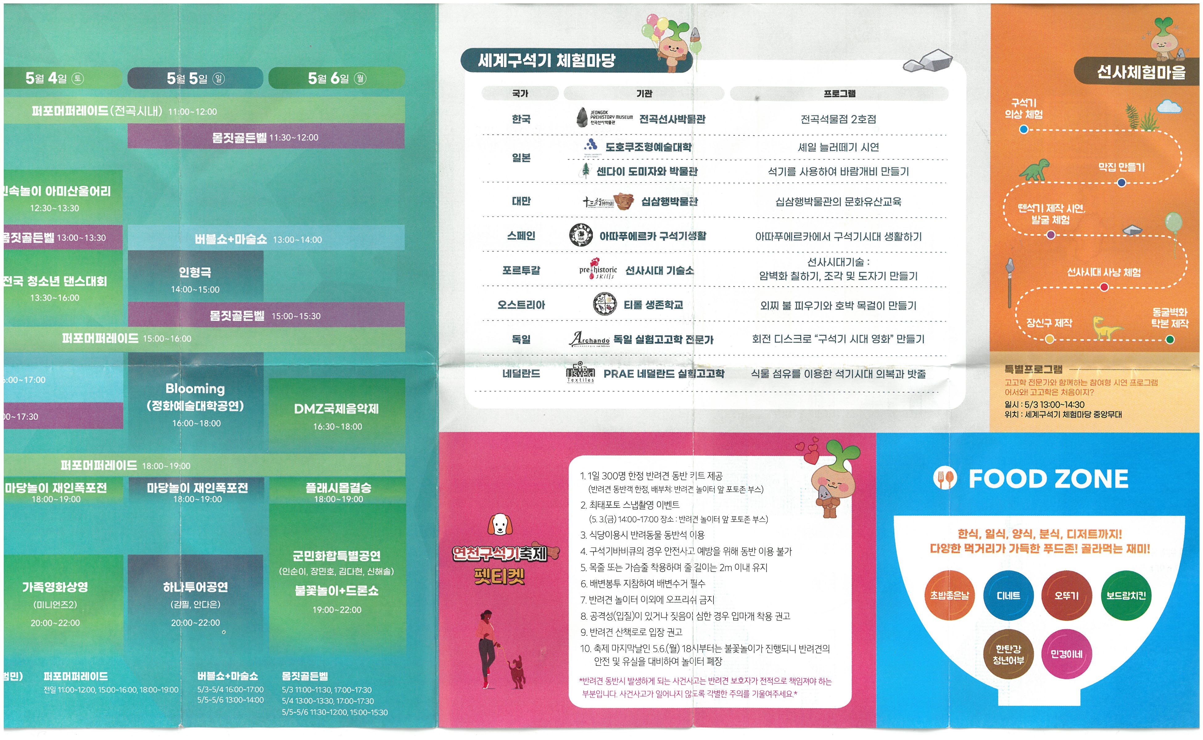 - 구석기 올림픽 : 볏짚 뜀들, 석재 끌기, 창던지기 등 친환경 재료로 구성된 6종 올림픽 종목 체험