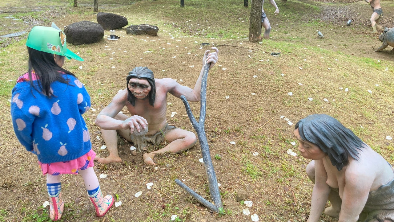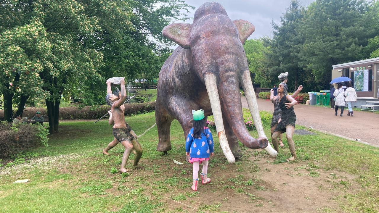조형물이 실제 원시인처럼 표현이 잘 되어 있어서 아이가 무척 흥미로워했다.