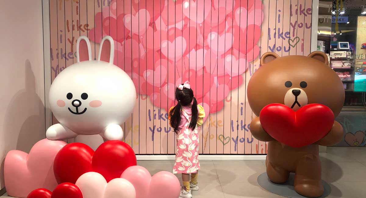 2층으로 올라가는 길에 벽면을 장식한 라인프랜즈의 캐릭터 그림이 화려했다.