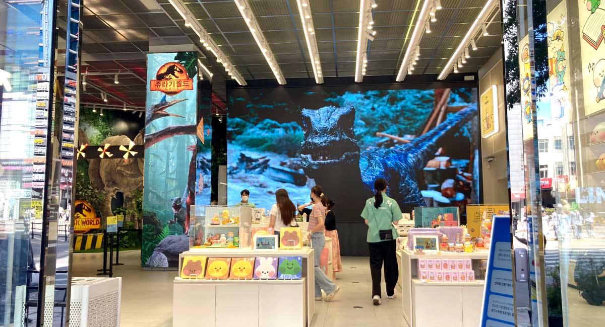 매장 앞에 도착하니 공룡으로 변신 한 스텝이 우리를 맞이했다.