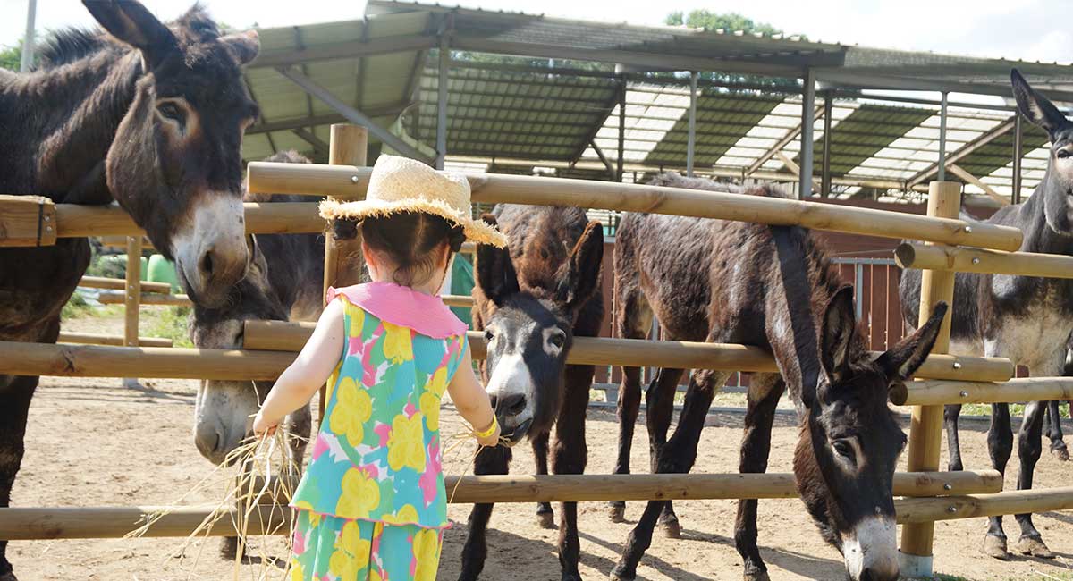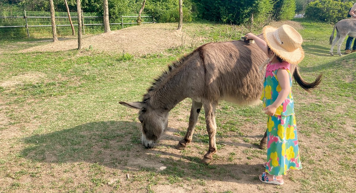 '건초 먹이기', '교감하기 및 포토타임', '그루밍', '당나귀와 산책' 네 가지의 당나귀와 함께하는 프로그램이다.