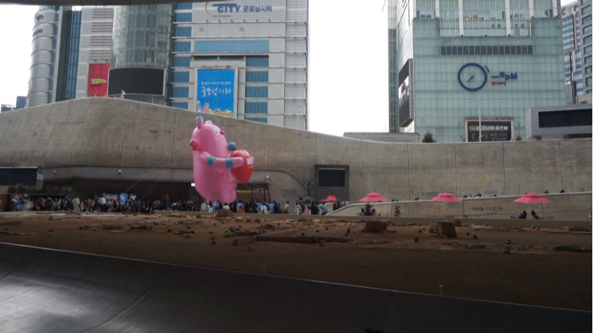 정해진 시간마다 음악대를 따라 둥실둥실 해치가 움직인다.