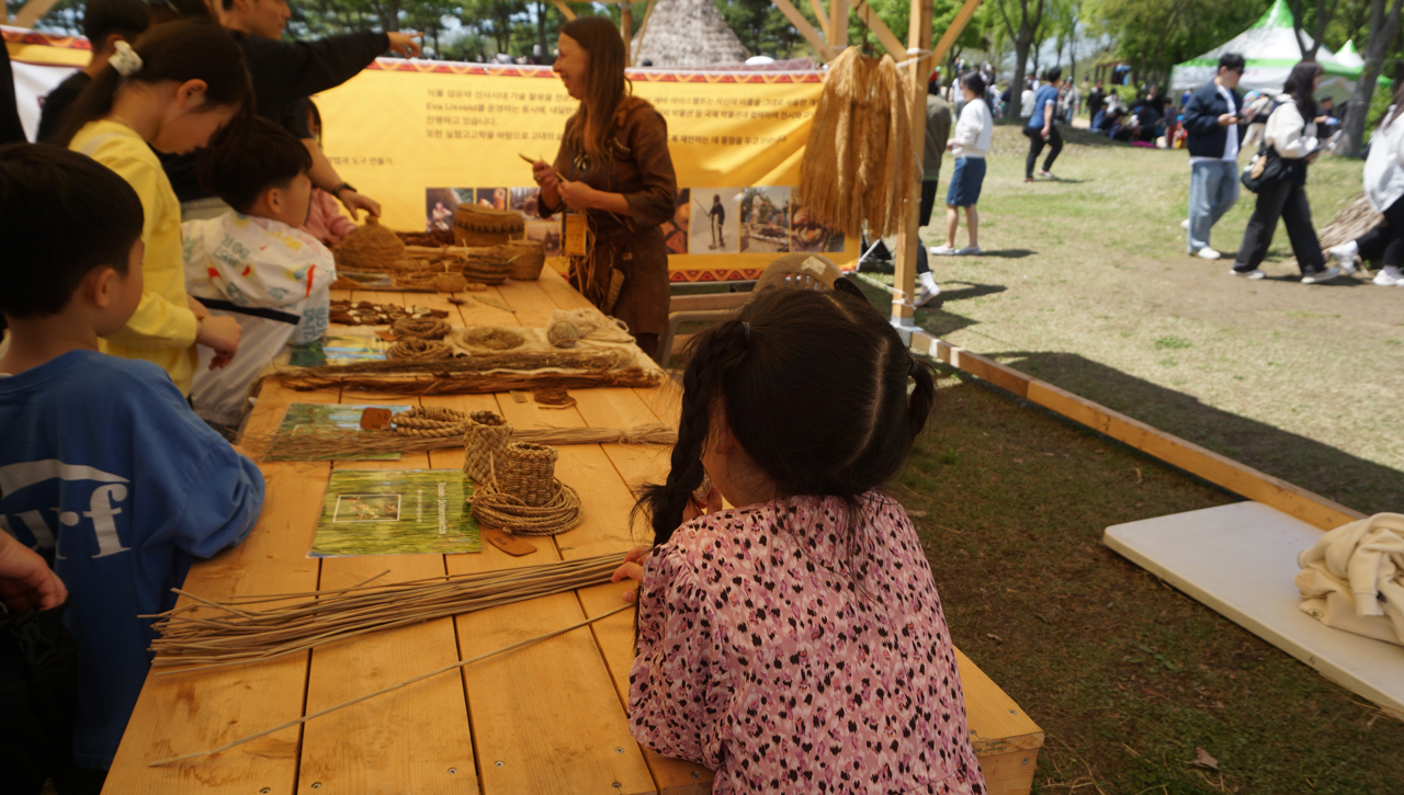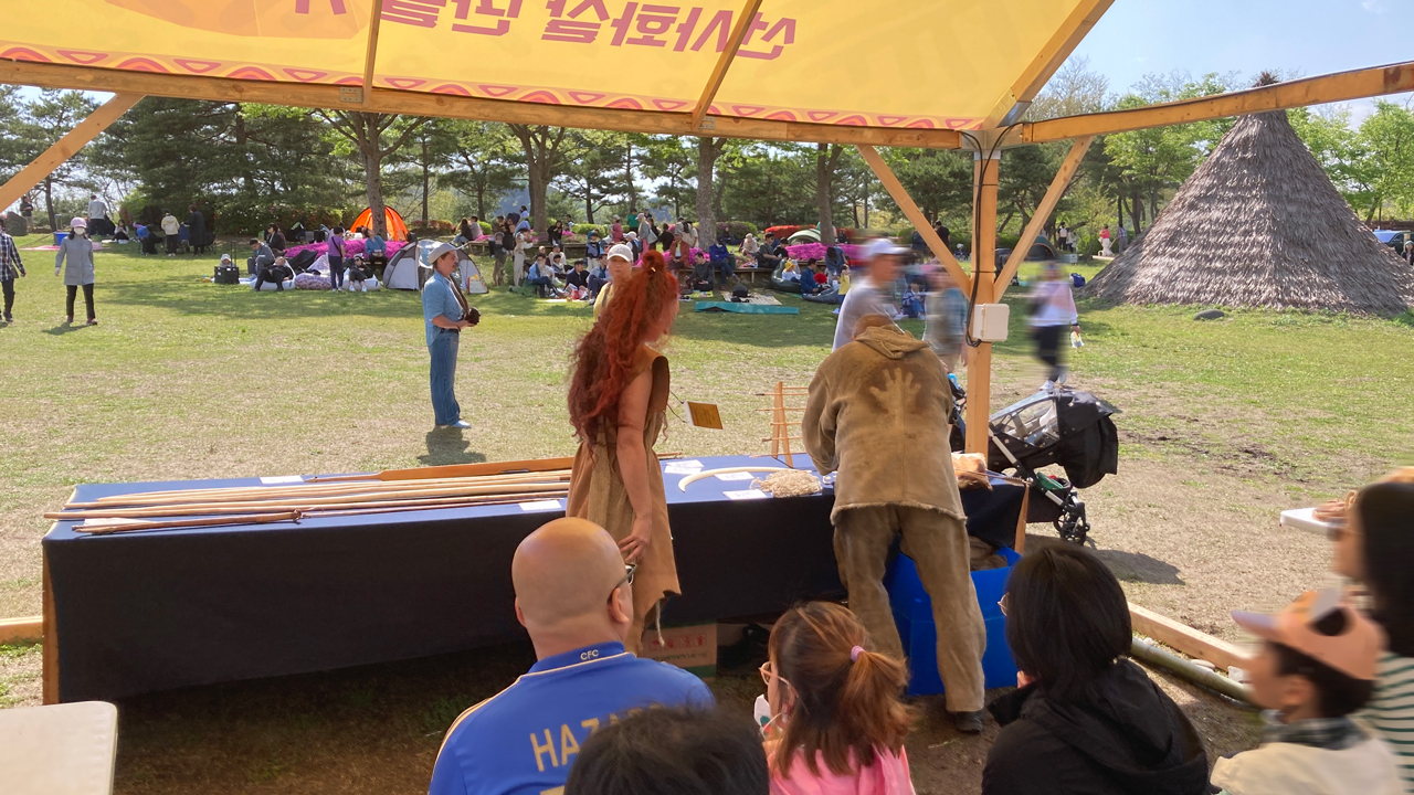 - 대만 부스에서는 원시 악기와 사냥 도구를 시연해 아이들의 호김심을 자극했다.