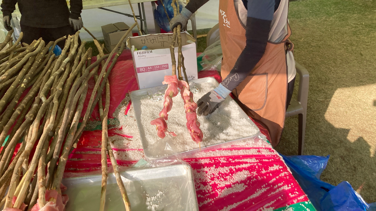 축제의 진정한 하이라이트 중 하나는 단연 구석기 바베큐 체험존이었다.