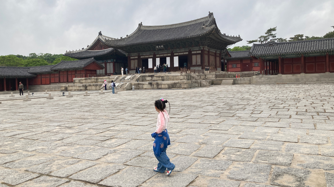 넓은 마당을 가로질러 정전 앞에 서자, 아이는 고개를 들어 지붕 끝을 오래 바라보았다.
