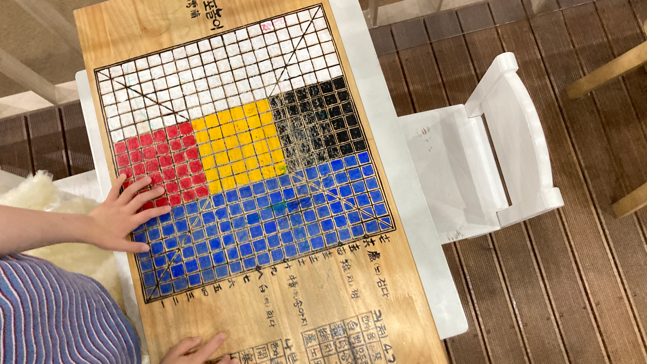 큰 화이트보드 형태의 칠판이 비치되어 있어 아이들이 마카펜을 활용해 자유롭게 그림을 그릴 수 있다.