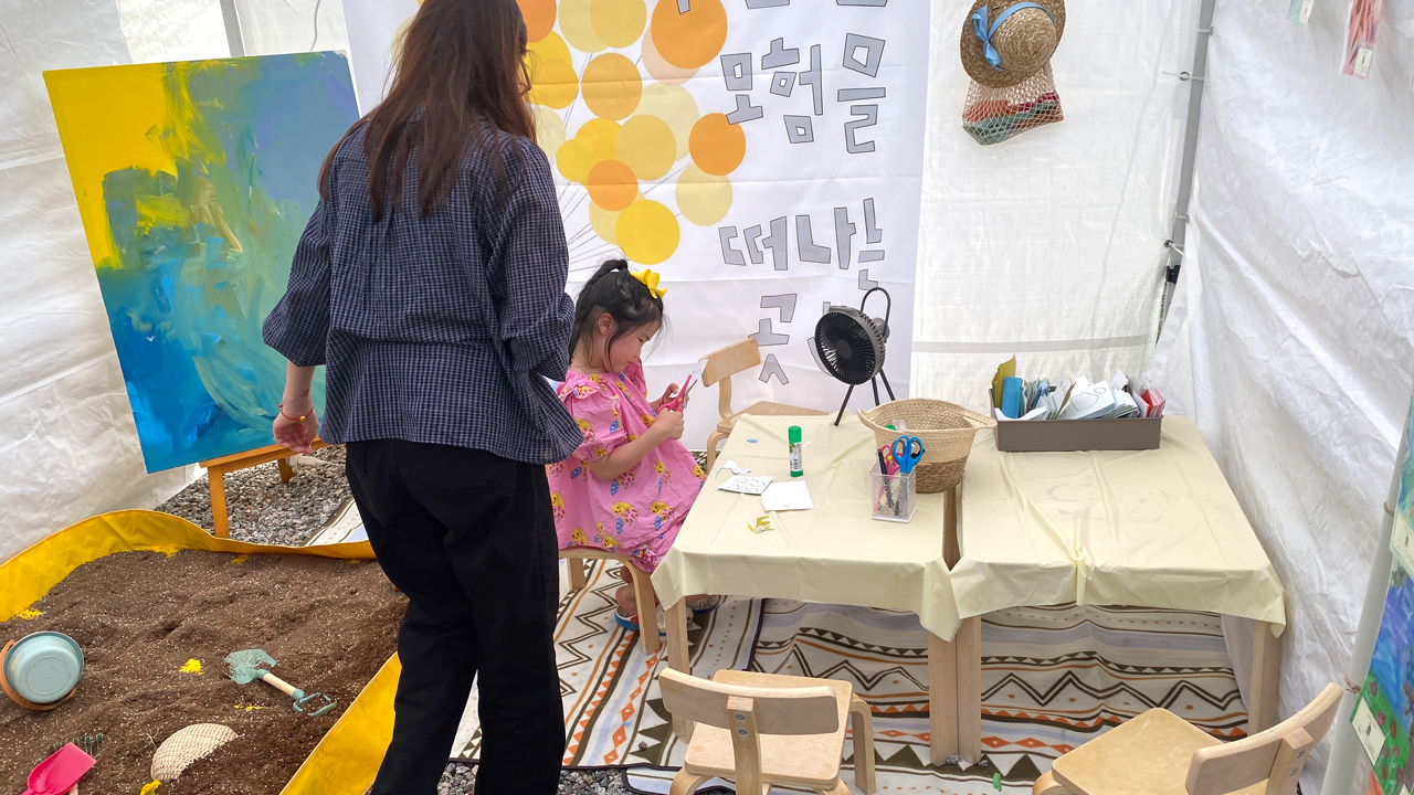 도깨비난장 한편, 조용하고 따뜻한 분위기가 감도는 작은 예술 부스가 하나 눈에 들어왔다.