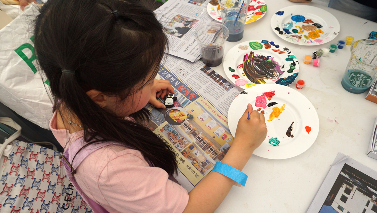 체험 참가자는 제공된 밑그림 위에 물감과 붓으로 직접 색을 입혀나가는 체험이었다.