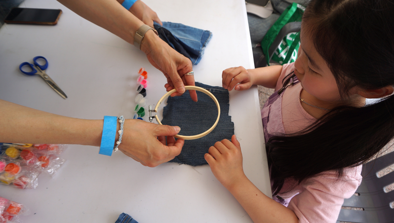 버려진 청바지 조각들이 감각적인 예술 작품으로 변신하는 업사클링에 참여했다.