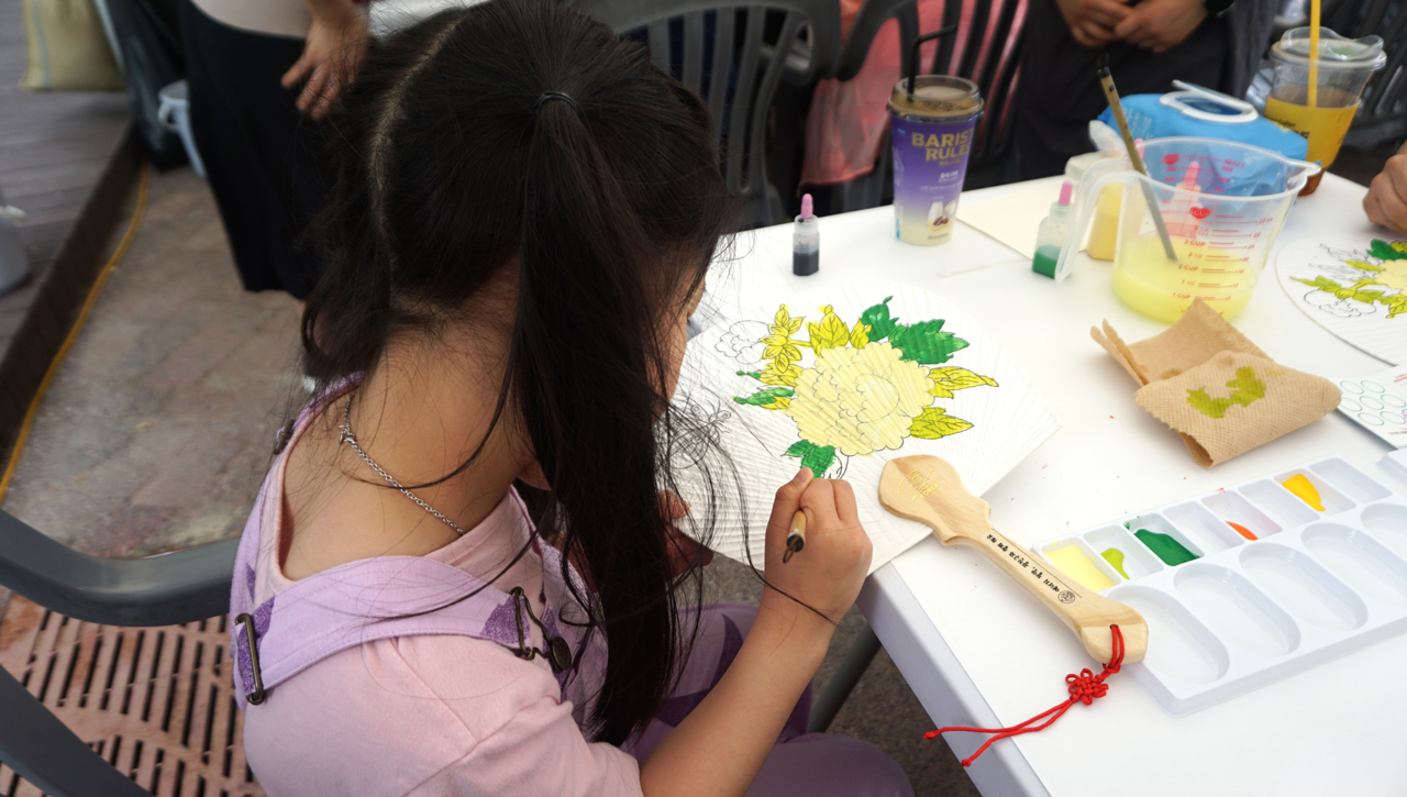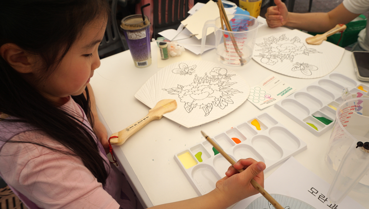 민화 부채 만들기 체험은, 아이부터 어른까지 모두가 즐겁게 몰입할 수 있는 시간이었다.