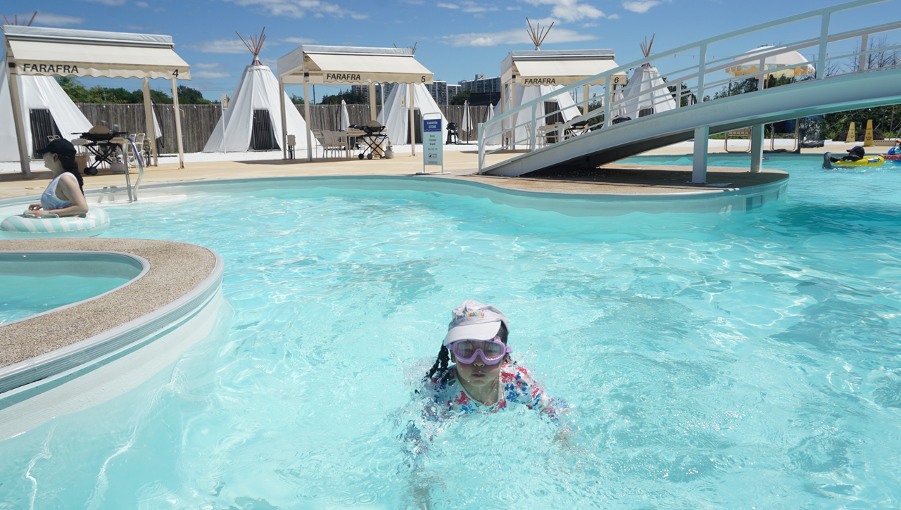 에메랄드빛 수영장에서 물장구를 치며 깔깔거리는 딸아이의 웃음소리가 여름 하늘에 울려 퍼졌다.