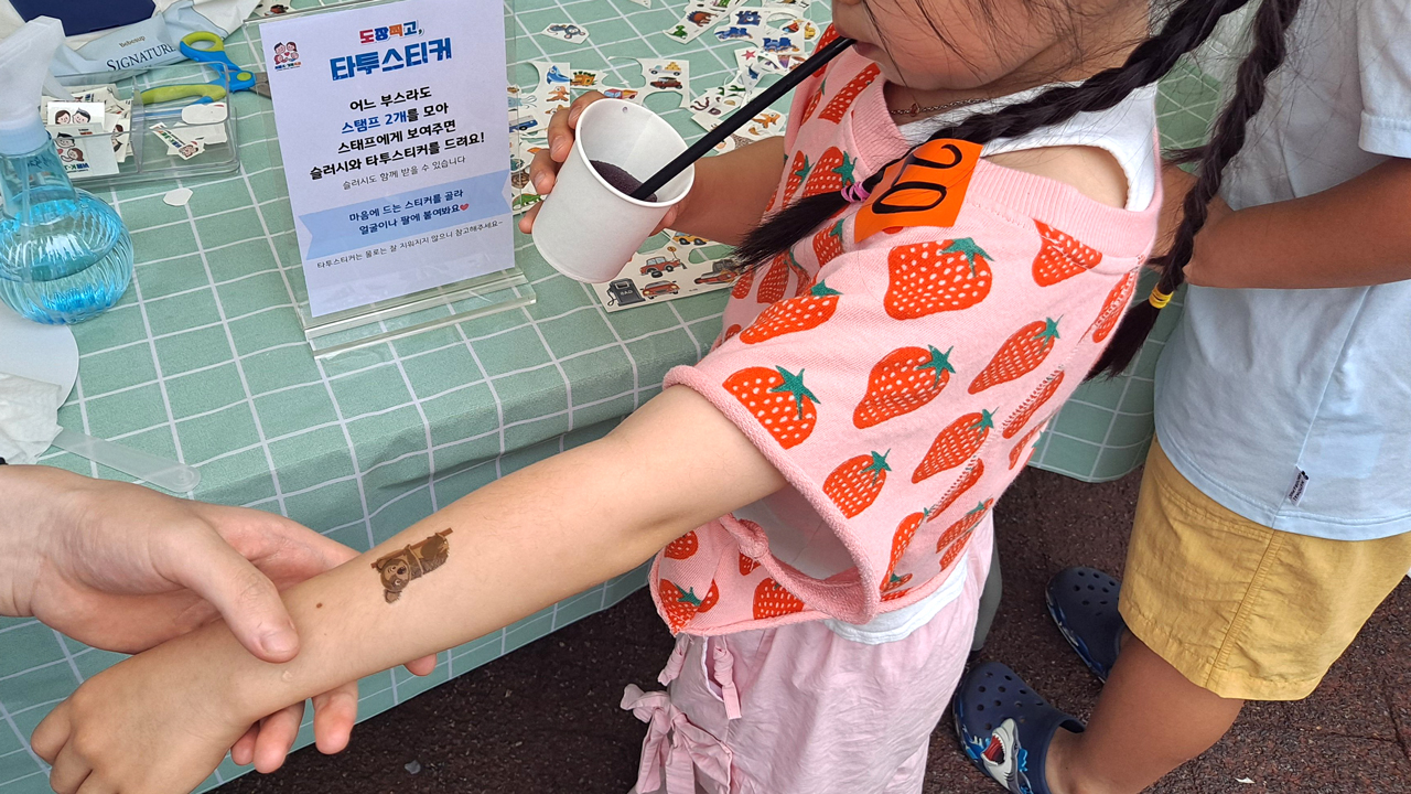 아이들의 웃음소리가 유독 활기찼던 곳, 바로 타투스티커 체험 부스이다.