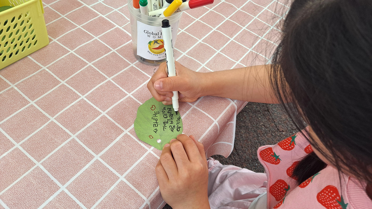 가족 구성원들이 진심을 담은 메시지를 직접 손글씨로 나뭇잎에 적어보는 체험이 진행되고 있었다.