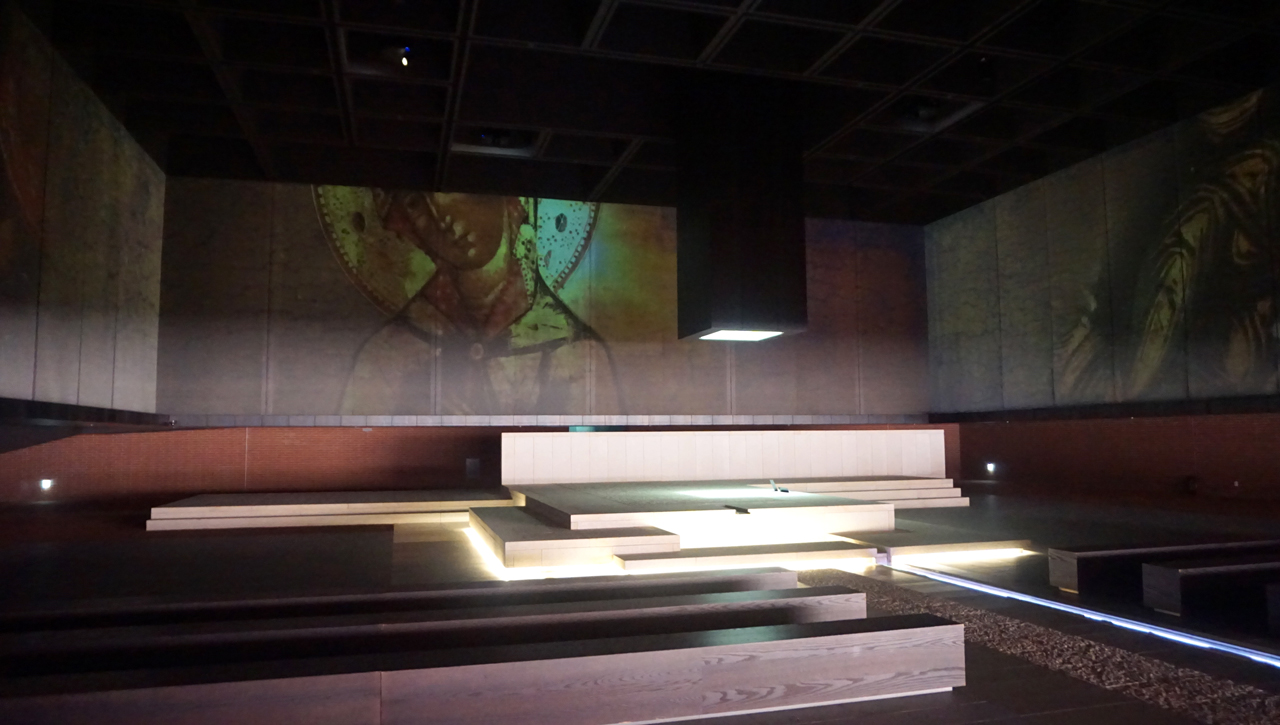 이는 사방이 벽화로 둘러싸인 고구려 무용총의 내부를 모티브로 하였다.