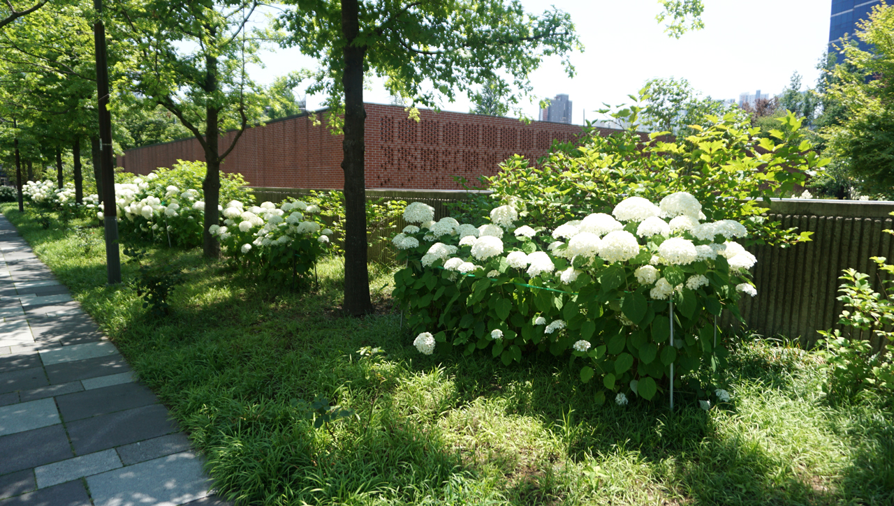 특히 하얀 수국에 뭉게뭉게 피어있어 산책하며 자연의 아름다움을 만끽할 수 있다.