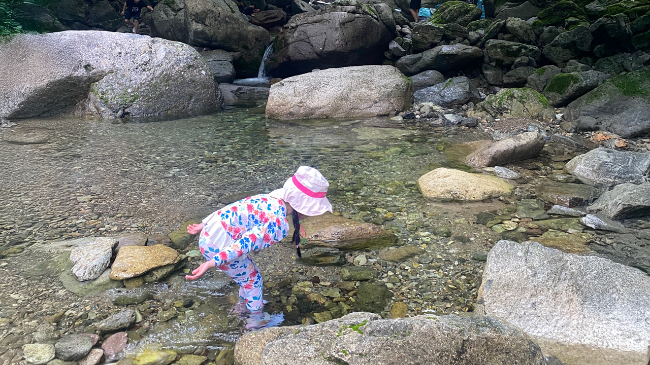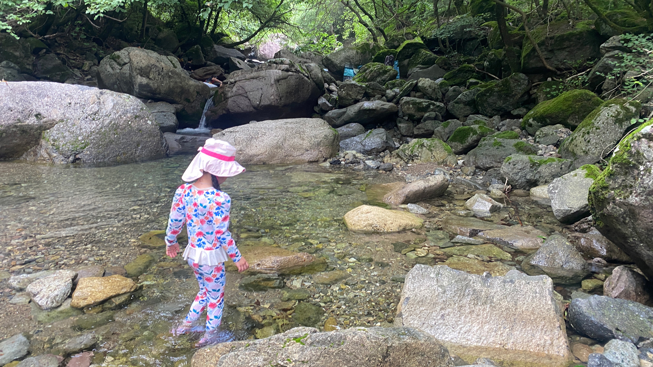 계곡물이 맑고 시원해서 선크림과 모자만 있으면 햇살을 즐기며 물놀이를 할 수 있었다.