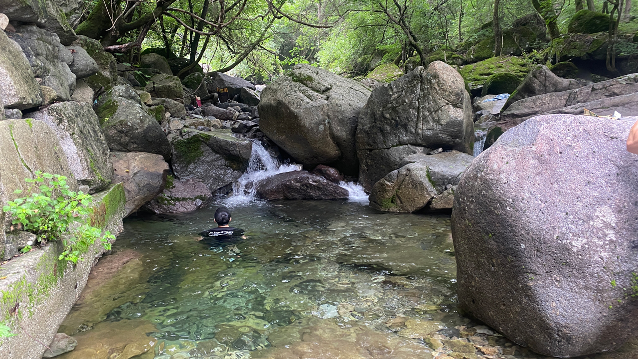 크고 작은 돌멩이와 암반이 주변에 있어서 물이 더욱 맑고 시원하게 느껴졌다.