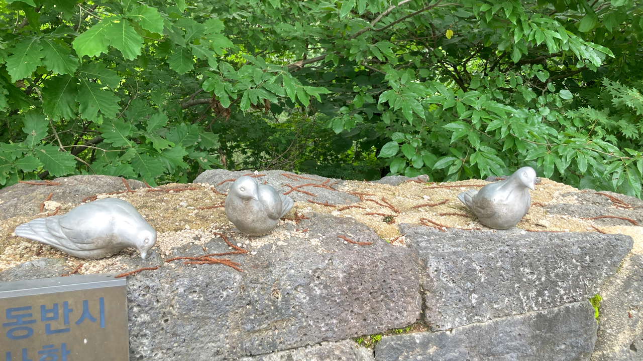 곳곳에 설치된 비둘기 조형물이 눈길을 사로잡는다.