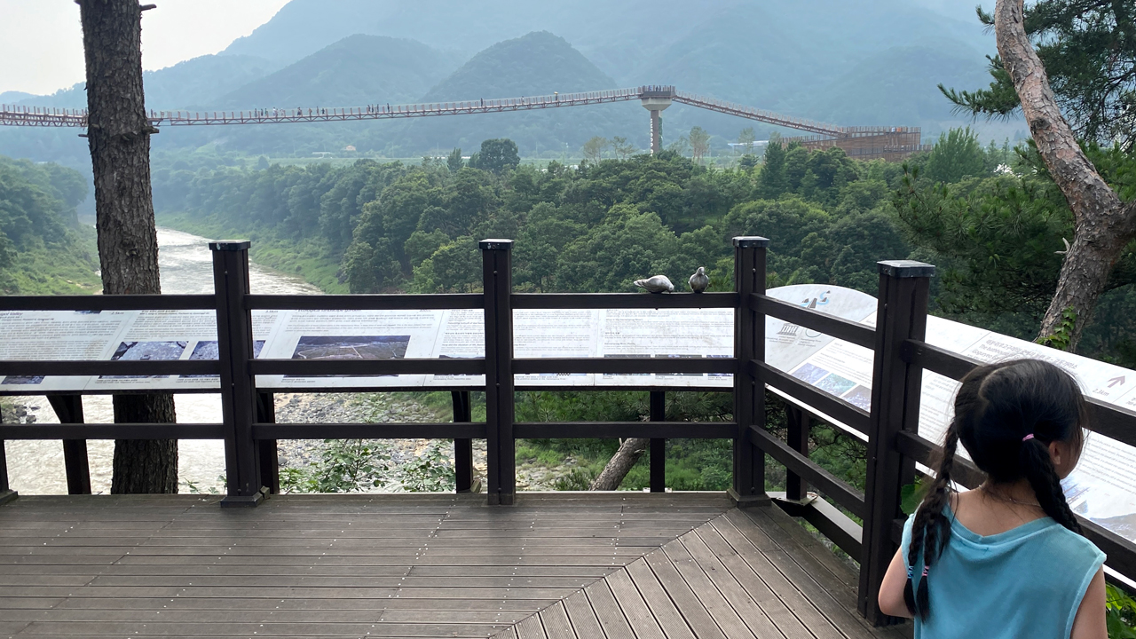 전망대에서 왼쪽으로 보면 y자형 흔들 다리가 보이고, 오른쪽에는 하늘다리를 볼 수 있다.