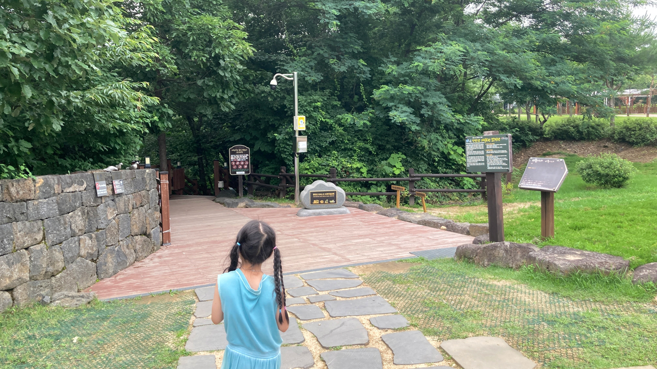 촬영 명소임을 알리는 안내판 앞에서 아이는 호기심을 보였다.