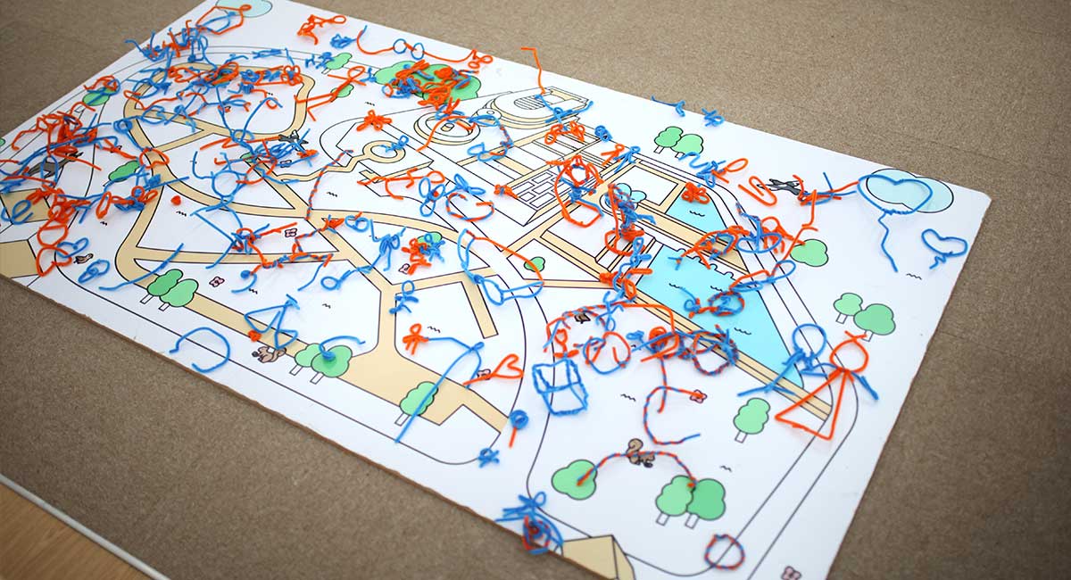 미술관 지도 위에 관람객들이 만든 사람들로 가득했다.