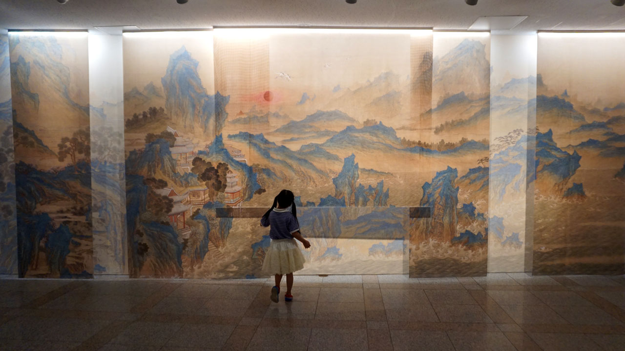 관람객이 벽화 속 세계로 들어가 마치 금강산을 거닐고,