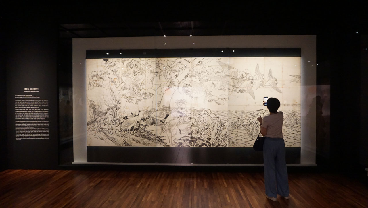 김은호의 백학도 초본(밑그림)이 105년 만에 벽화와 함께 전시되며,
