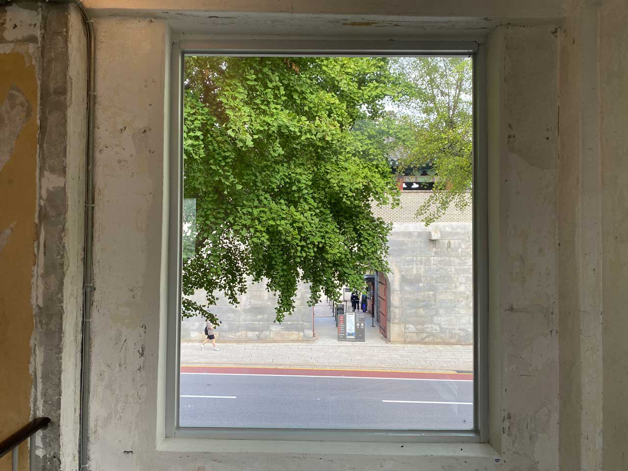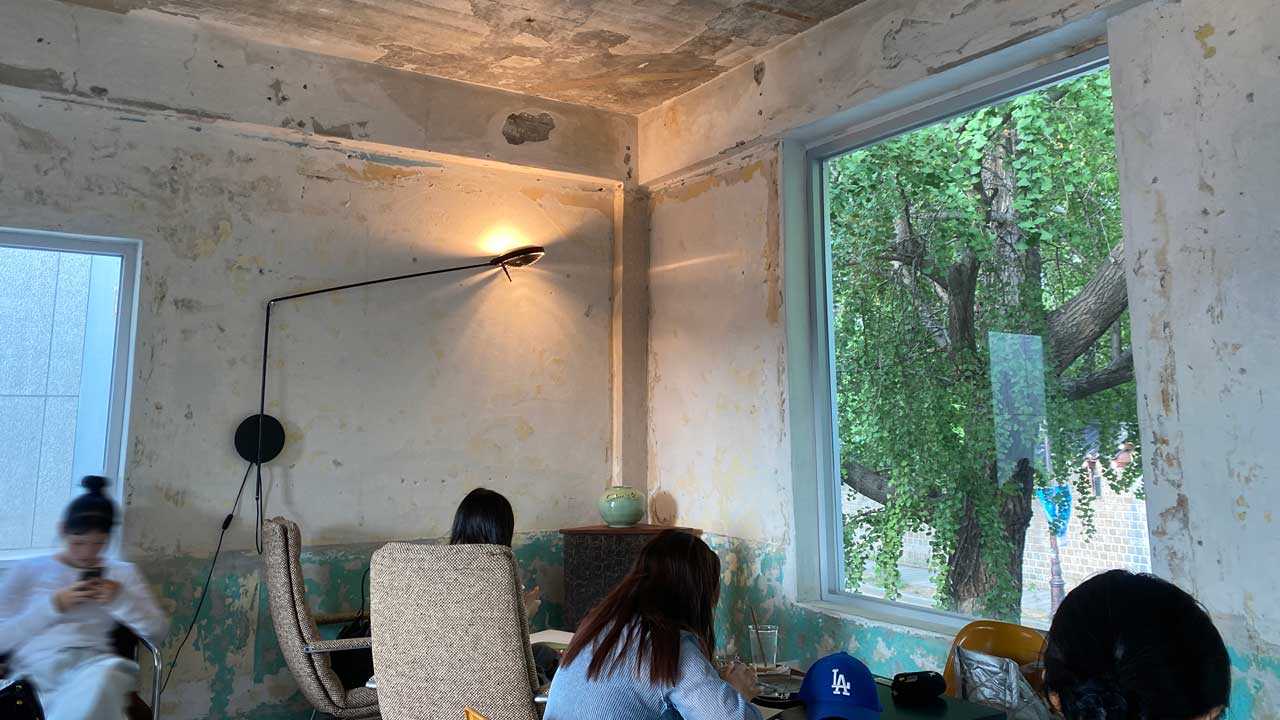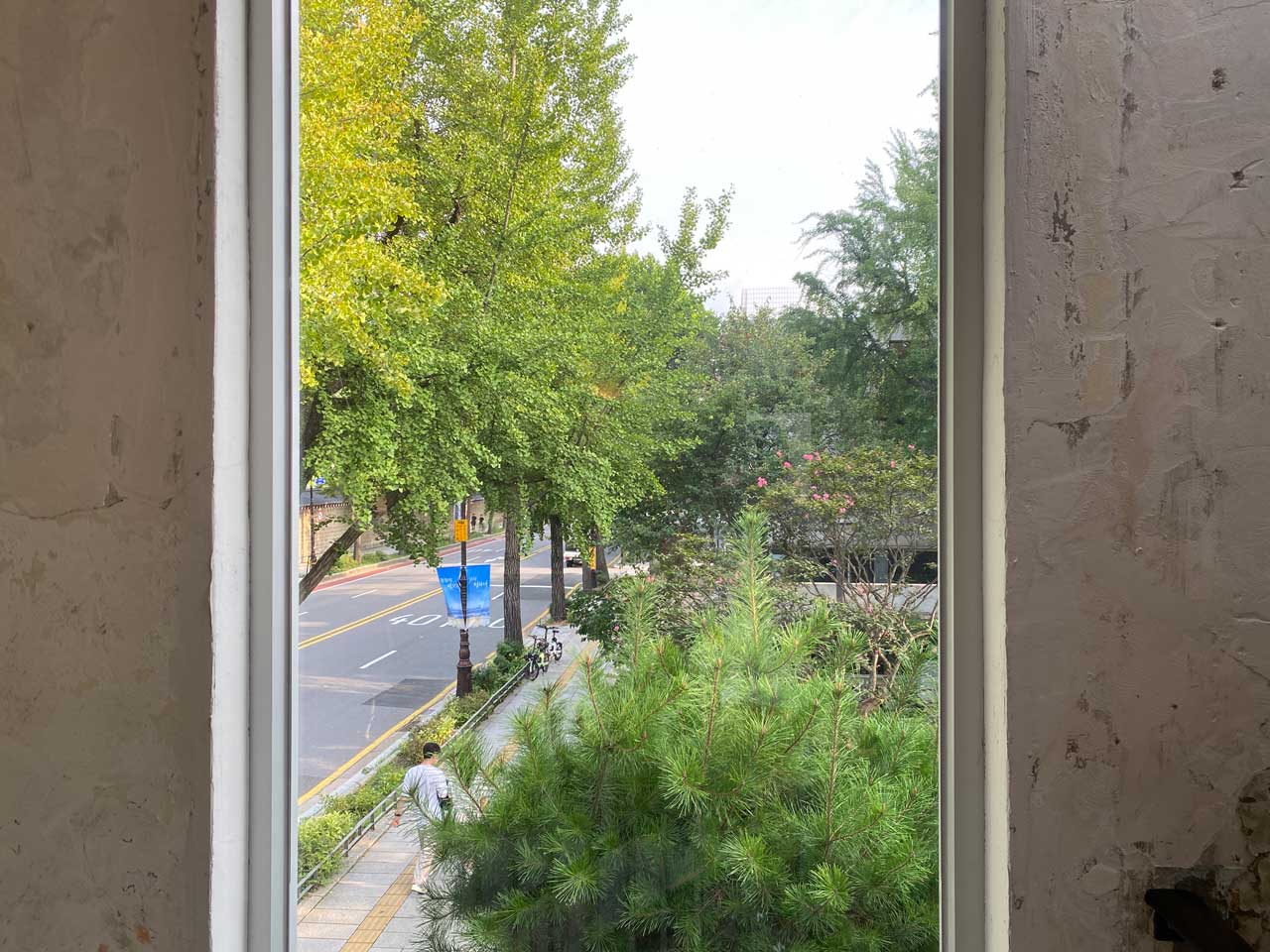 경복궁 근처답게 창밖으로 보이는 전통 가옥과 나무들이 어우러져,