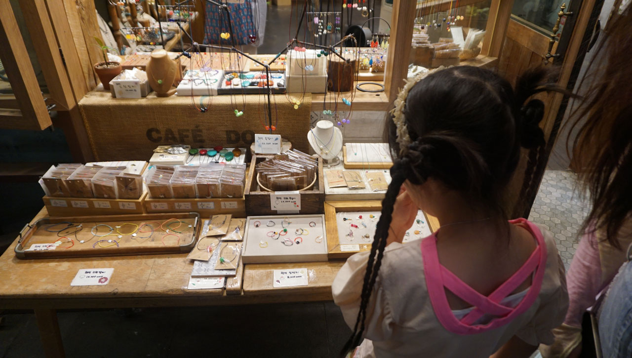 층마다 아기자기한 공예품과 디저트 가게가 가득해 아이와 함께 걷기 좋았다.