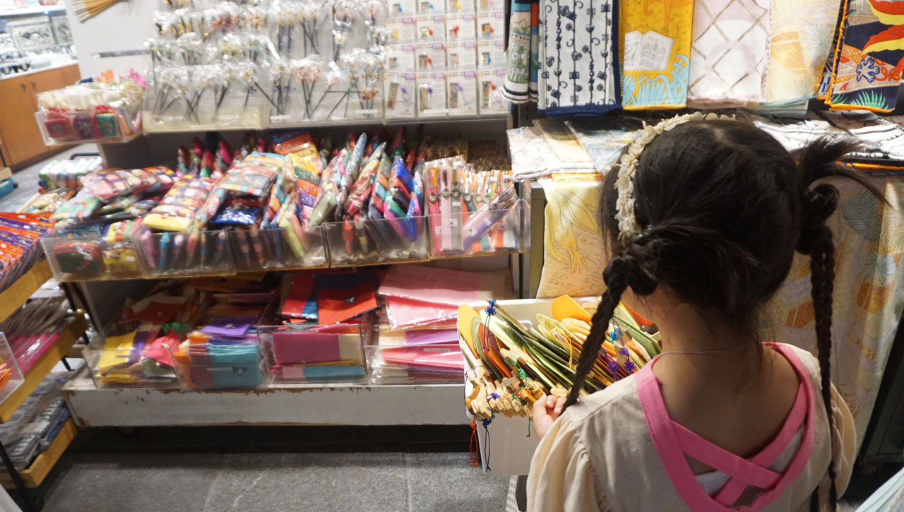 특히 딸아이는 화려한 색감의 전통 부채에 푹 빠져 한참을 구경했다.