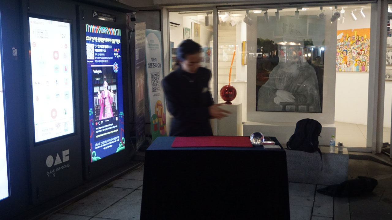 인사동 거리를 걷다 우연히 마주친 길거리 마술쇼는