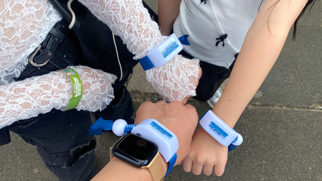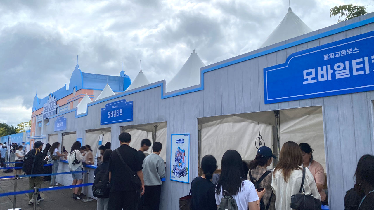 입구 근처 팔찌교환부스에서 모바일 티켓을 보여주고 팔찌를 받았다.