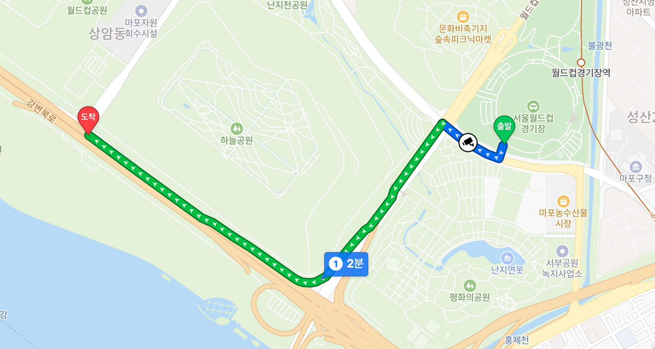 - 첫차: 오전 10:00(월드컵경기장역 출발)