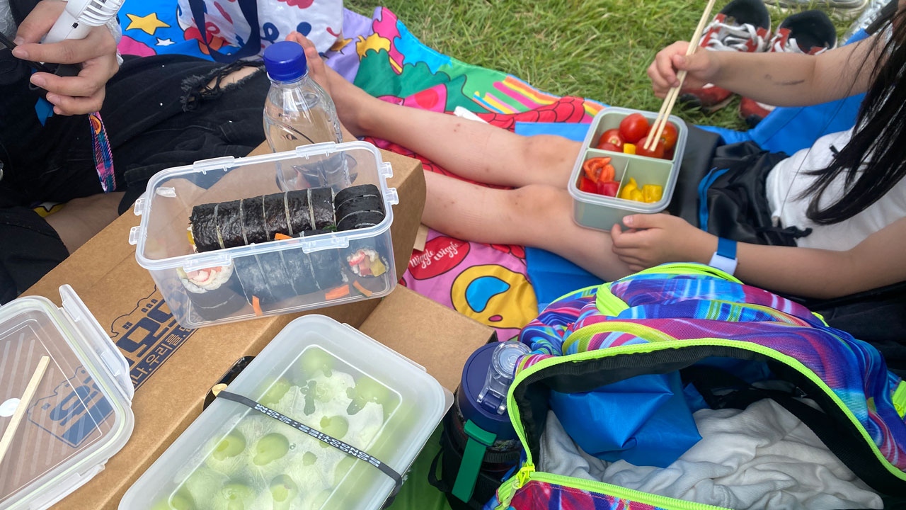 우리도 넓은 잔디밭 한구석에 자리를 마련했다.