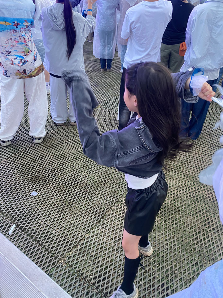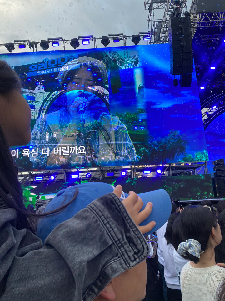 아이가 가까이에서 가수의 열창을 느끼며 색다른 매력을 찾은 듯 신나 보였다.