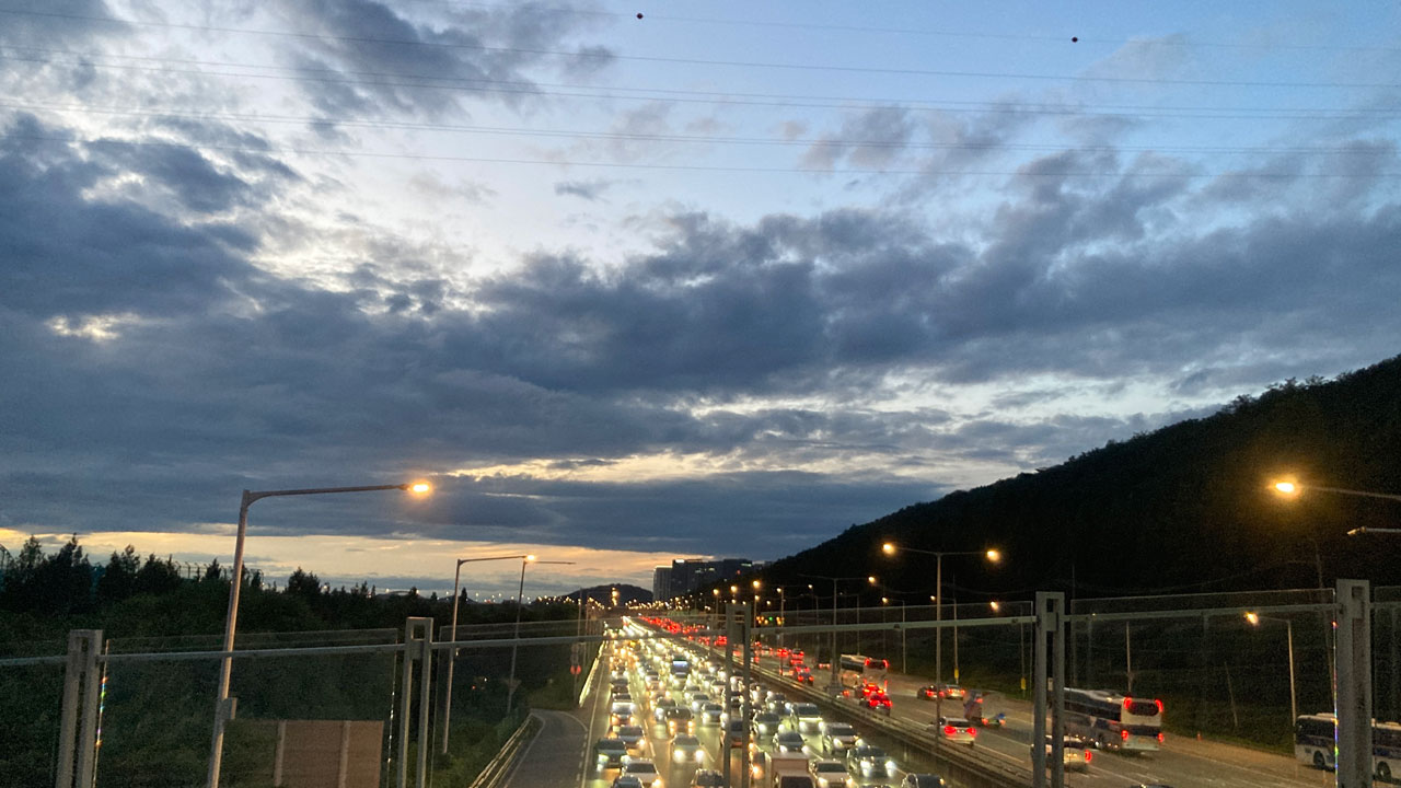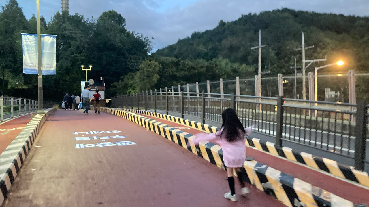 난지공원 입구의 첫인상 셔틀버스에서 내려 육교를 건너는 순간,