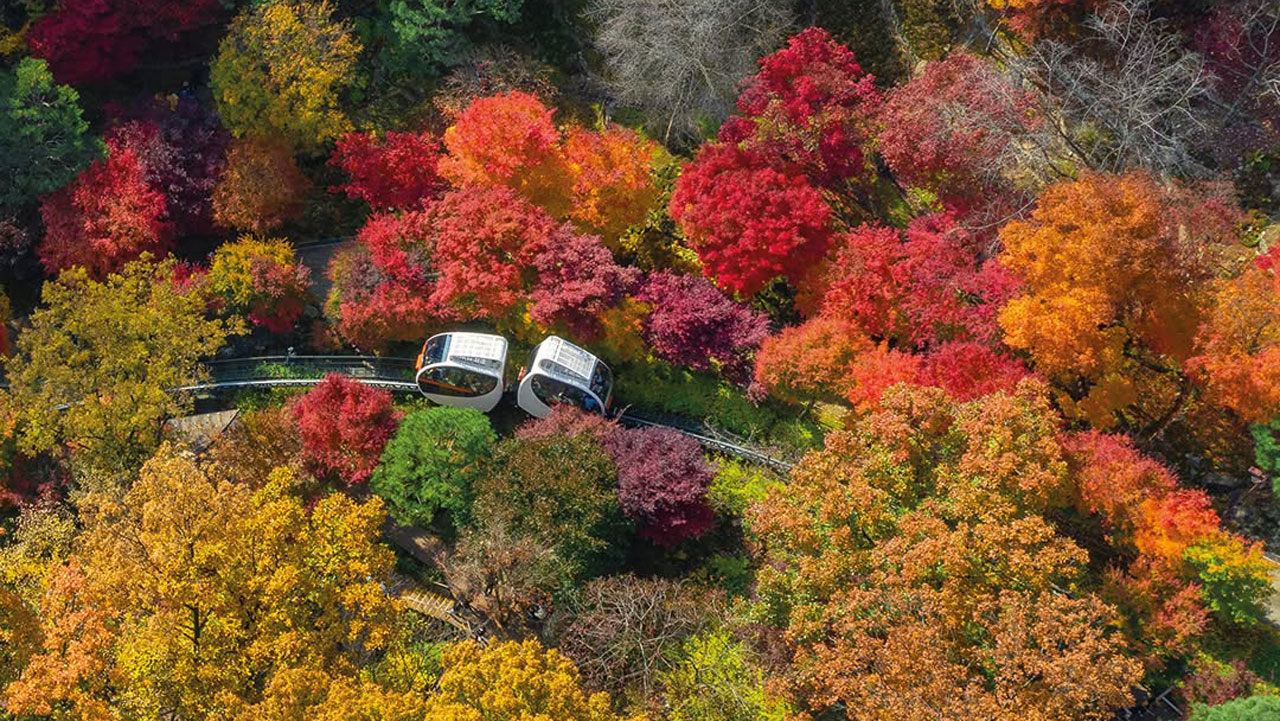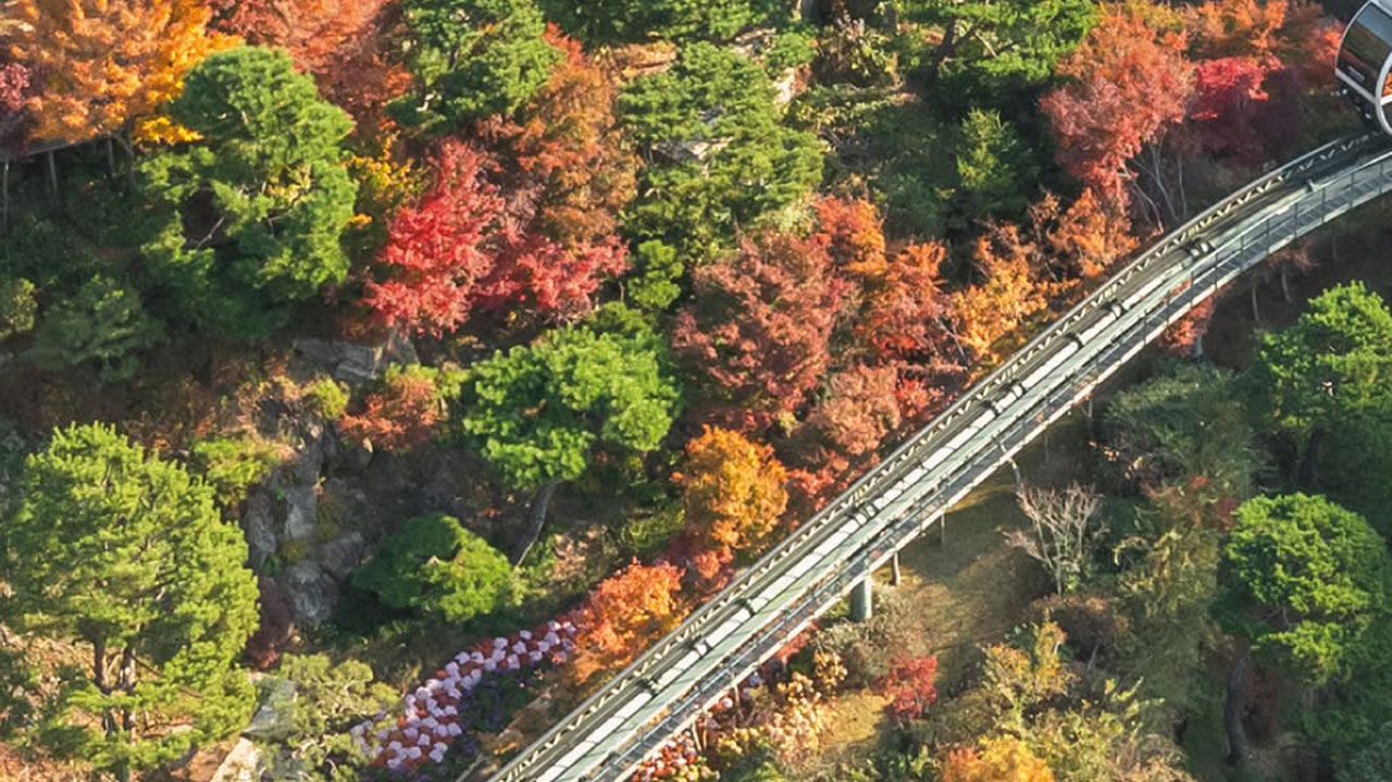 모노레일을 타고 숲속을 누비며 단풍을 감상할 수 있어