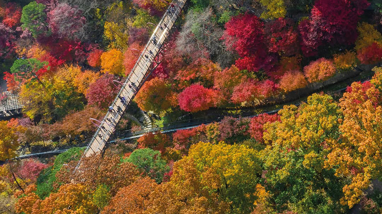 400여 종의 다채로운 단풍나무와 숲 사이를 가로지르는