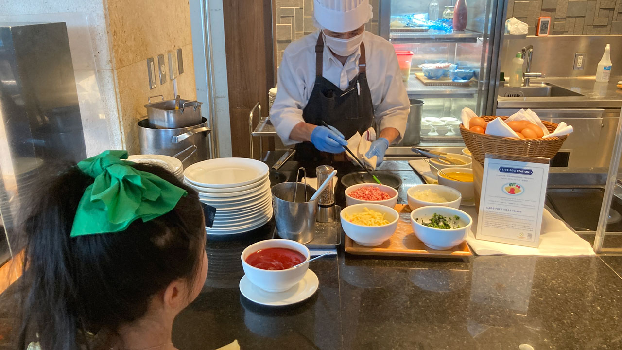 - 오믈렛과 에그 베네딕트: 라이브 스테이션에서 주문 즉시 조리.