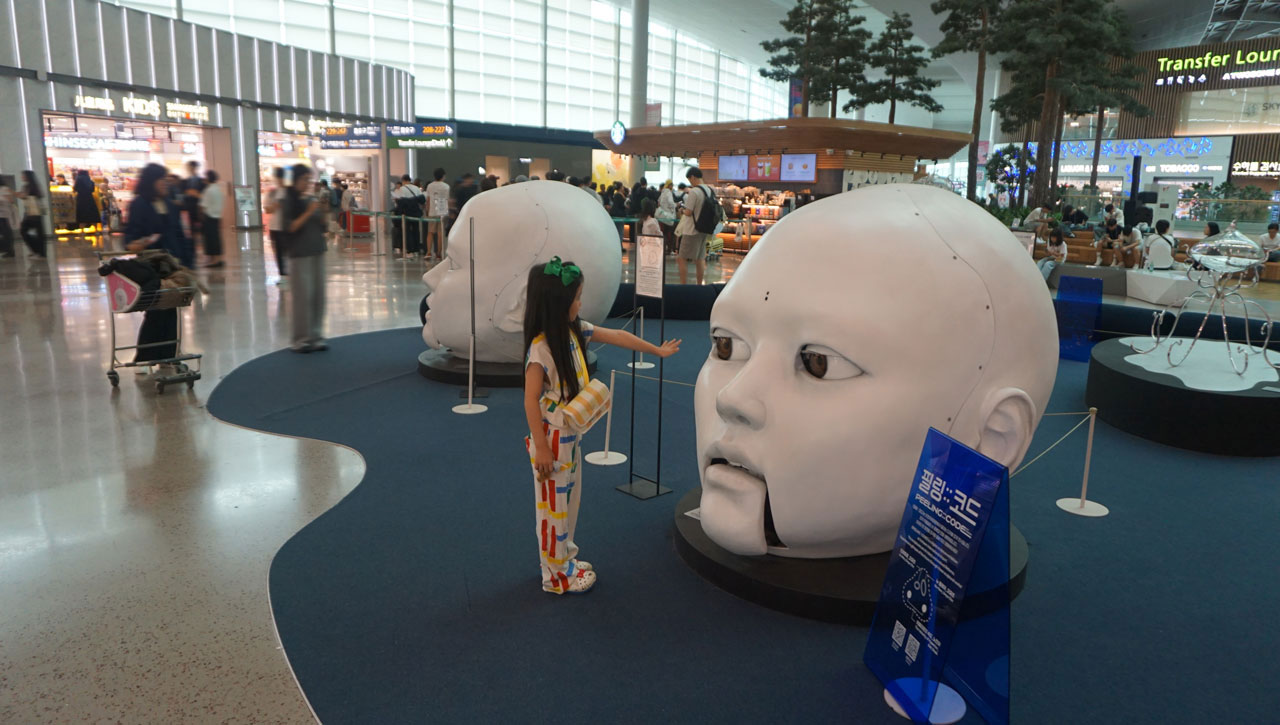 From Incheon Airport’s Terminal 2, the trip began with excitement. A captivating art installation, Hyperion’s Speed by Nojina, and a smart luggage-carrying robot added a futuristic touch. Korean Air’s coloring kit kept the kids entertained during the 2-hour flight.