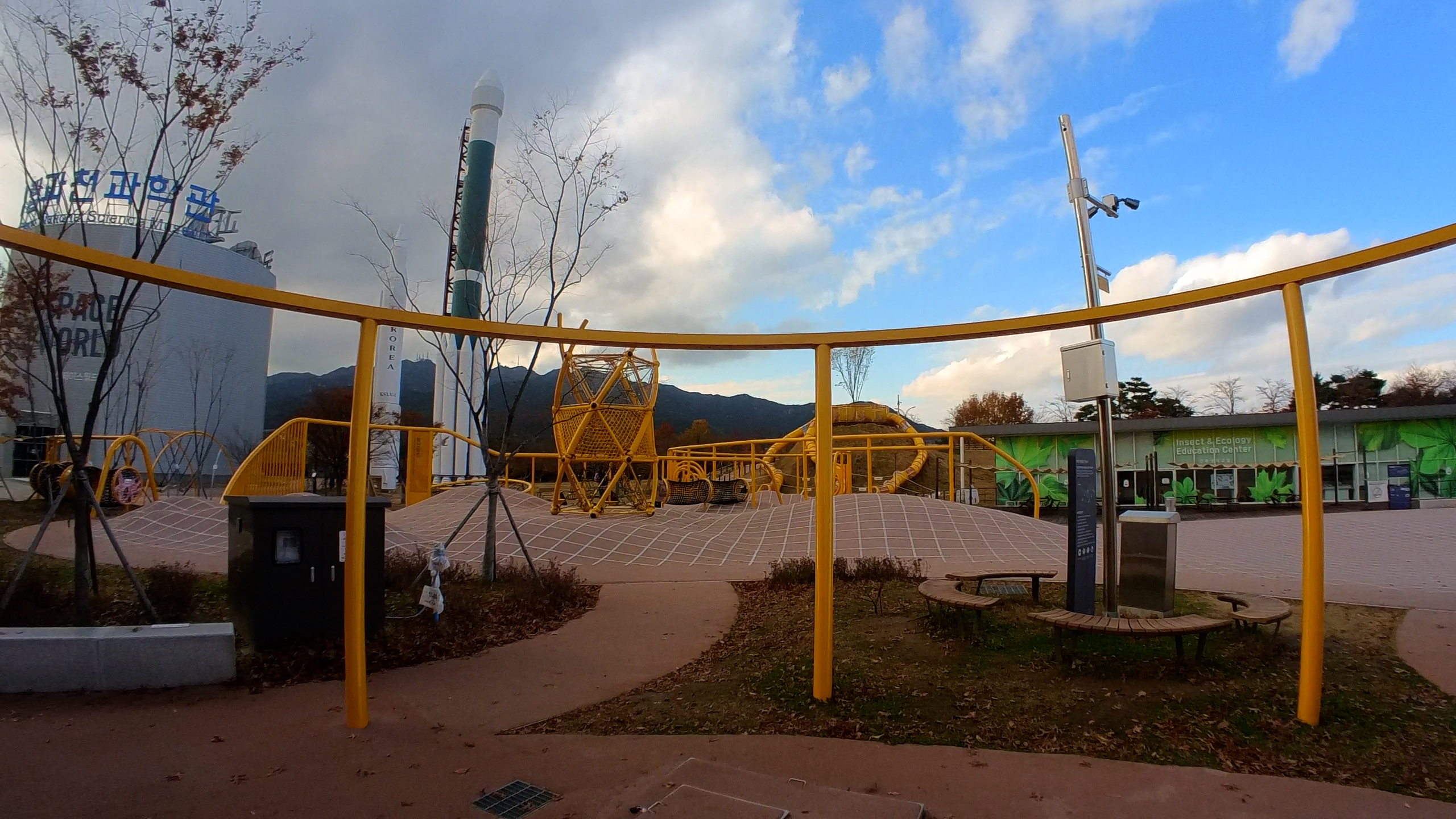 전시장 뒤편으로 우주의 기지와 같은 노란색 놀이기구가 펼쳐져있었다.