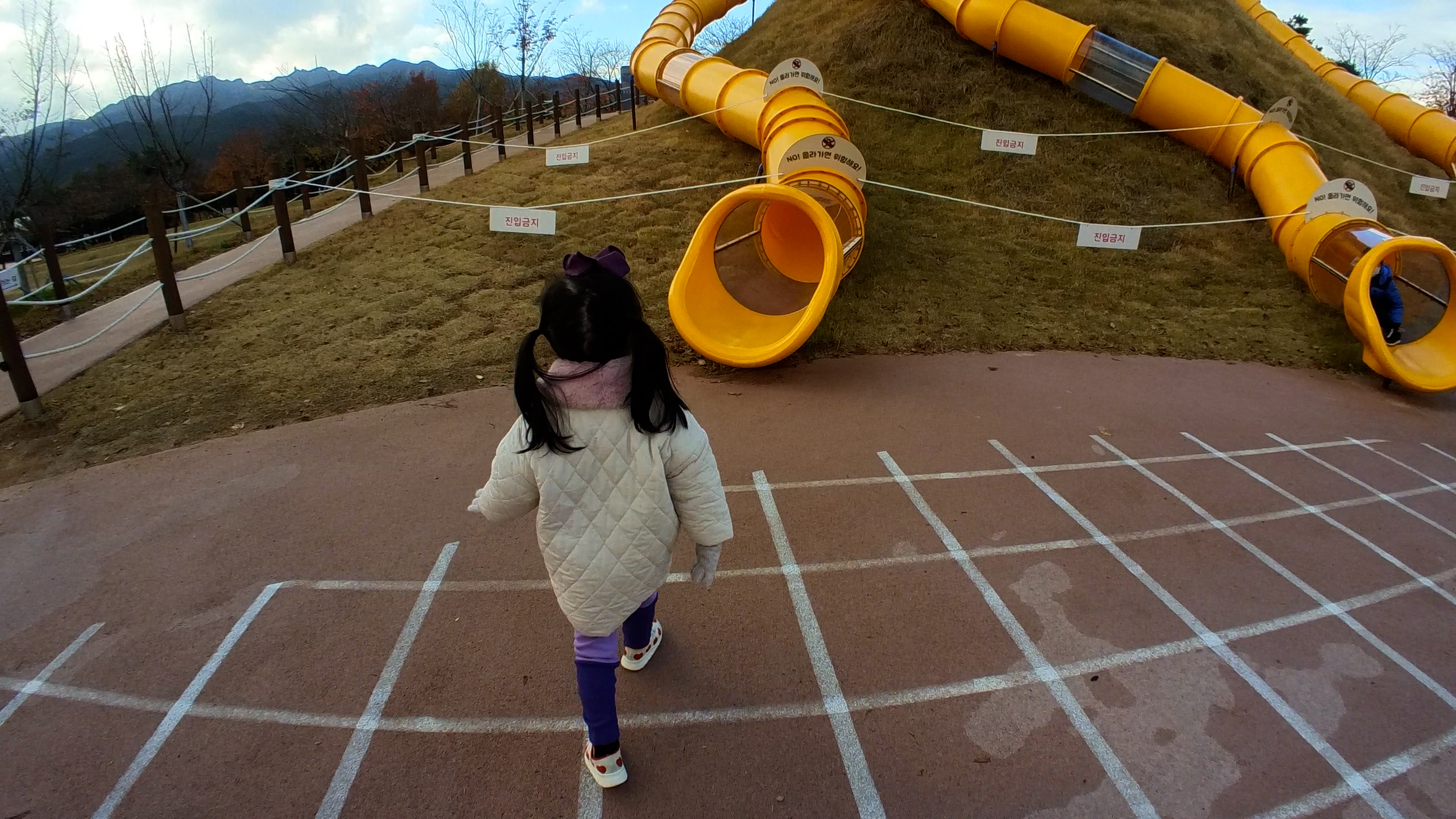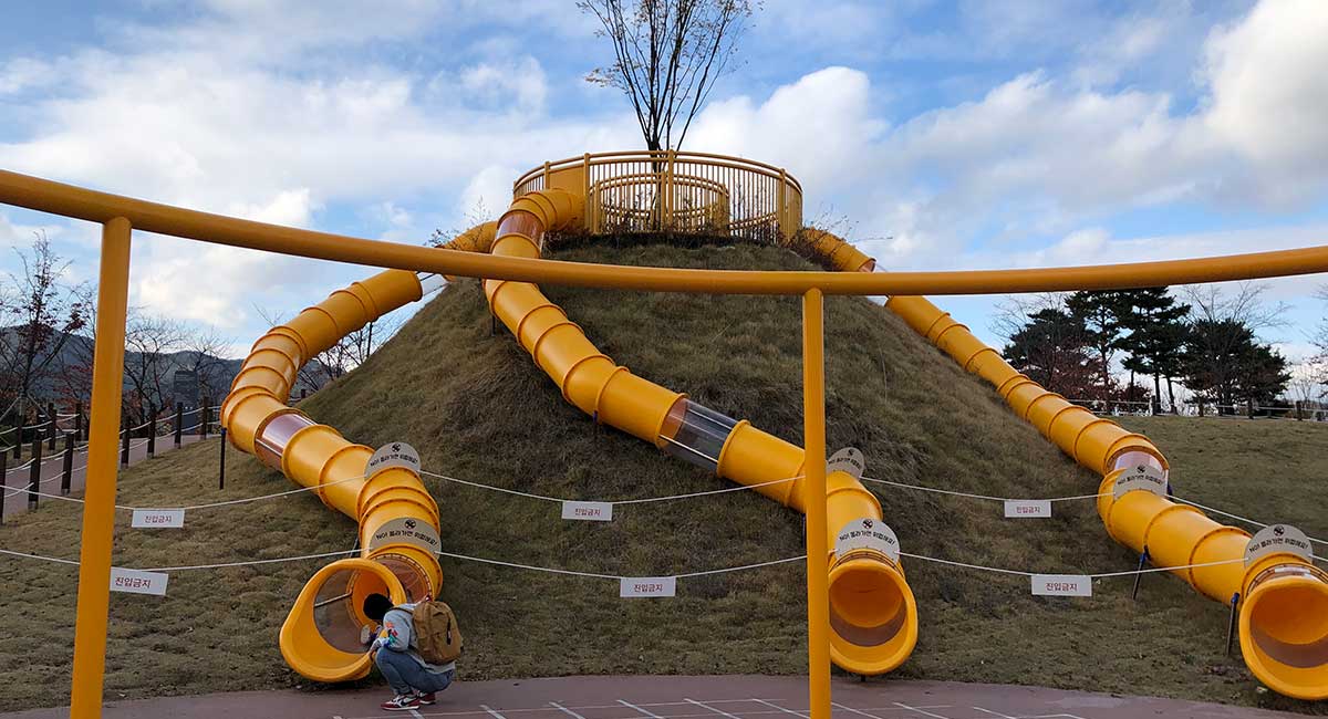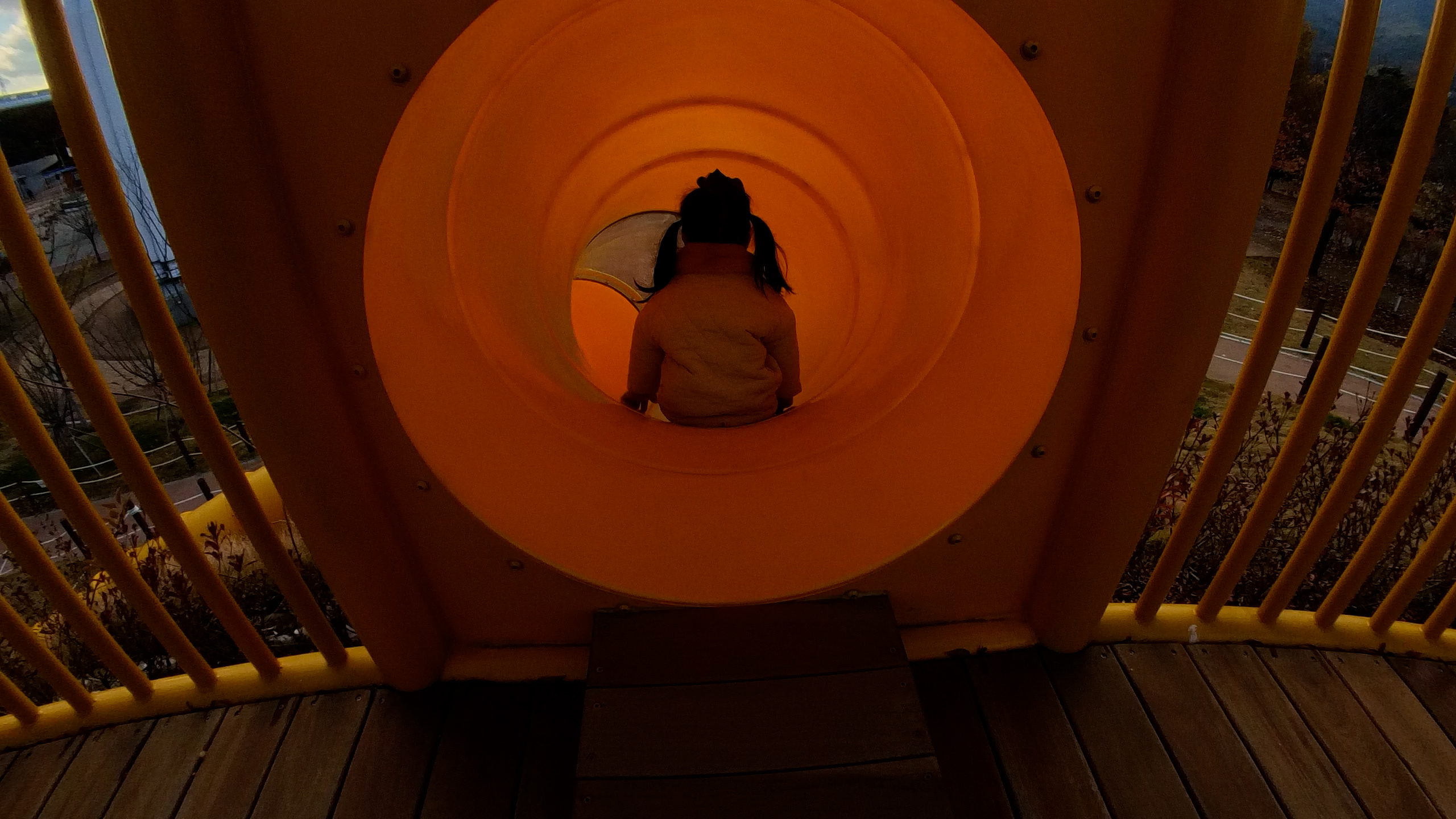 노란색 통로로 빨려 들어가듯 아이는 또 미끄럼틀 속으로 들어갔다.