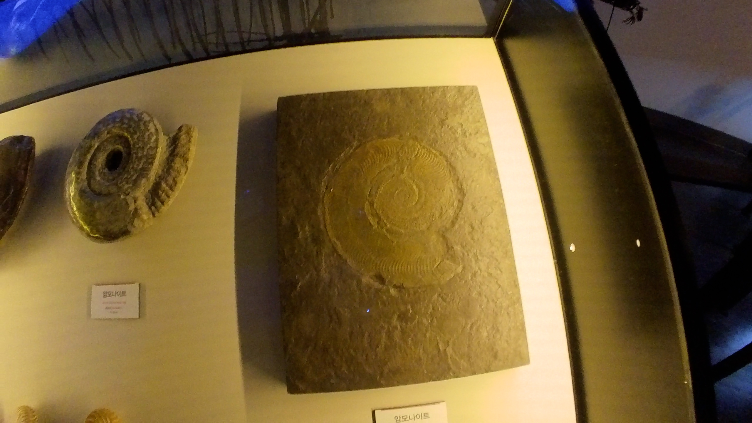염소의 뿔 같기도 하고 몸을 동그랗게 말은 채 박힌 암모나이트의 화석이 전시되어 있었다.