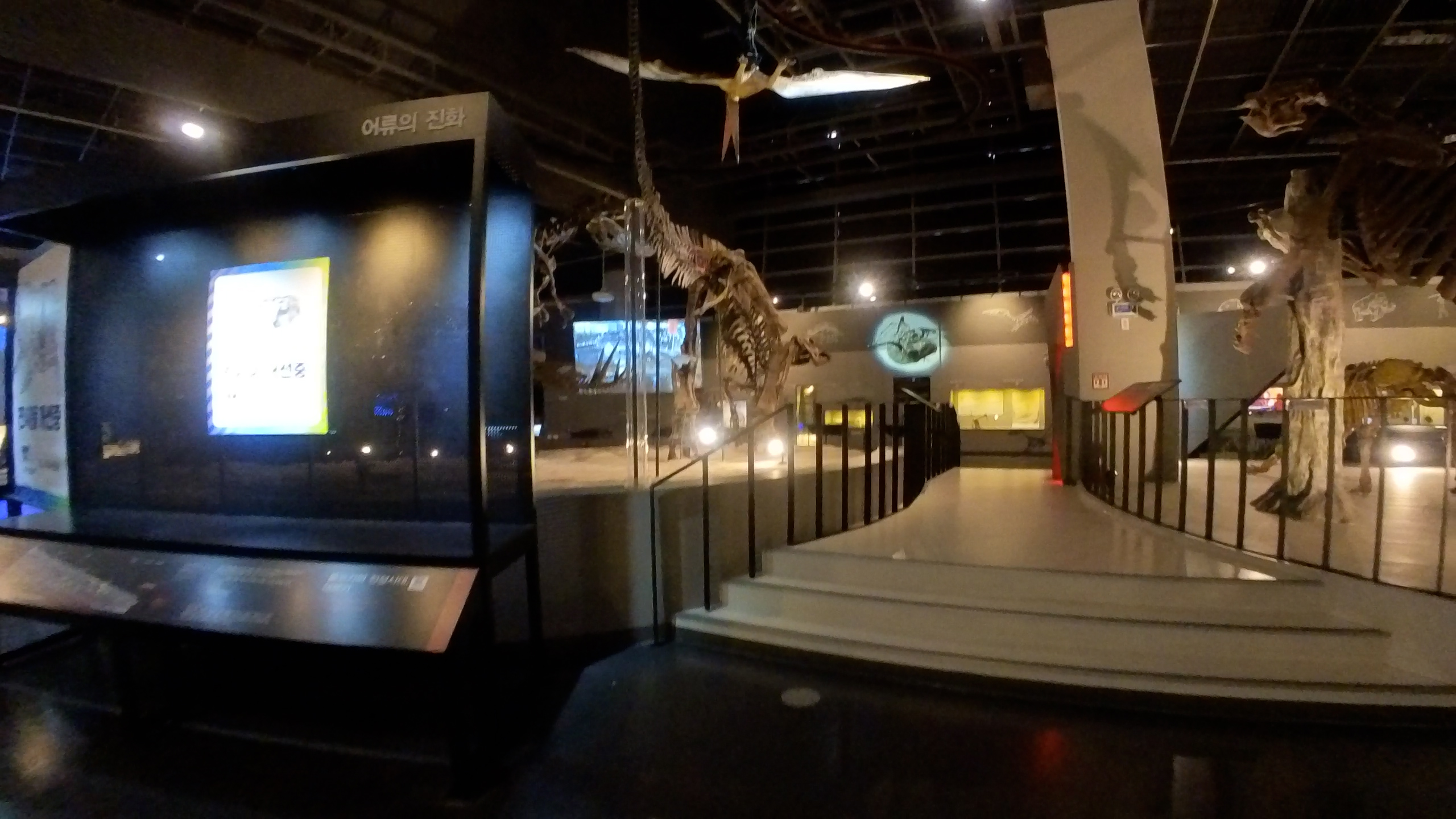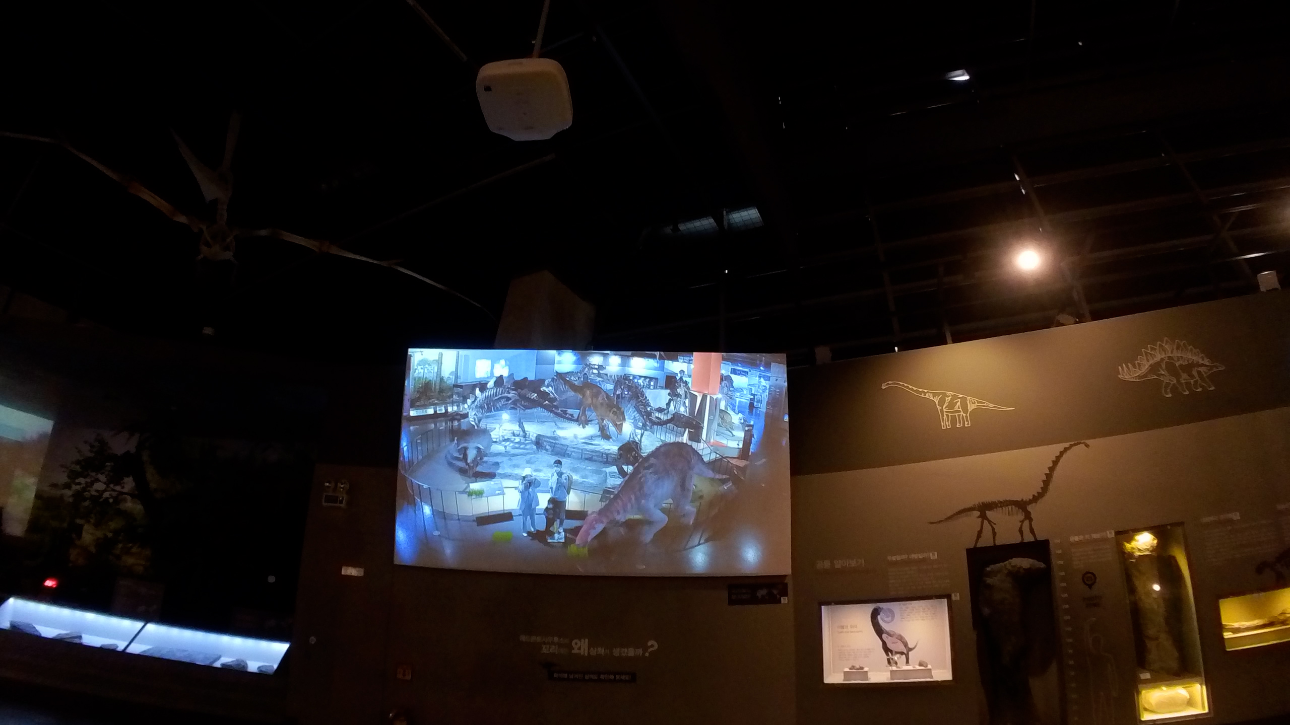 전시관 가운데 설치된 거대한 화면에서 공룡들이 우리 주위를 맴돌고 있었다.