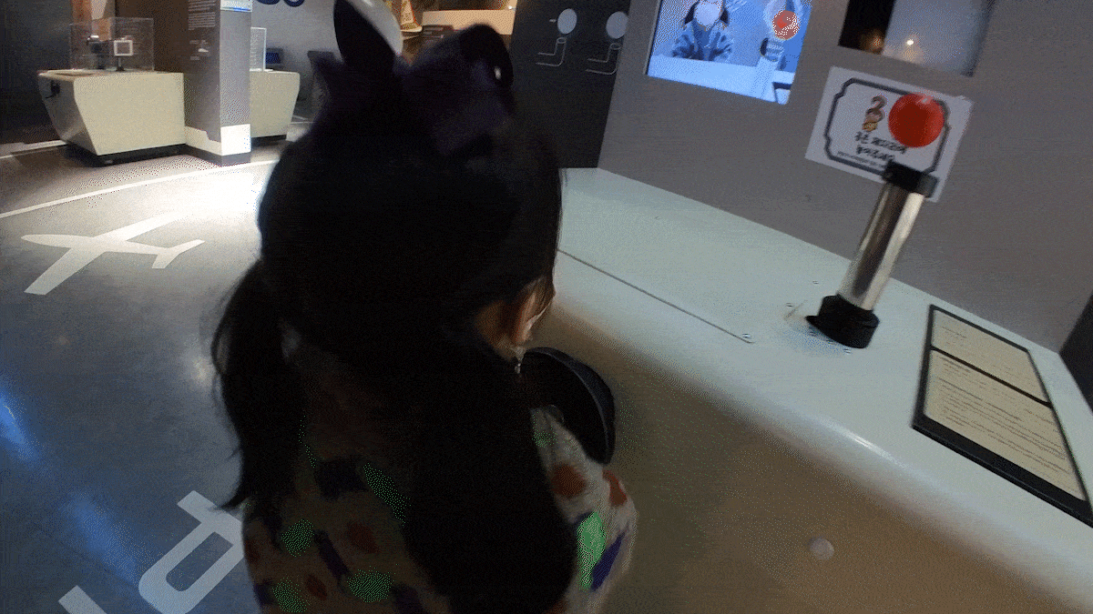 비행기 종이 접기를 해서 꽂으면 휙 날려준다든지, 비행기를 조정하면 움직임을 볼 수 있는 체험들이었다.